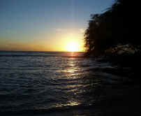 One night as we were on the phone and I was again wishing that I could see them, Scott was busy buying plane tickets online. He said, "OK, we've got plane tickets. Now all we need are concert tickets!" I couldn't believe it! Little did I know he had ulterior motives for bringing me to such a beautiful island. The night before the show, we attended a luau on the other side of the island. It took forever to get there in all the traffic and Scott was so upset that we were going to be late. I told him not to worry and that he should be enjoying everything. I had no idea that he was afraid he would miss his perfect opportunity to propose. We ended up making it in time and everything was fine. Before the dinner and show, there were lots of activities to participate in so we walked around and kept busy. We went and got matching tattoos (fake, of course). The guy working there asked me if we were newlyweds, and I whispered "No, but I'm working on it!" Little did I know what was about to happen... A few minutes later, they announced that they were going to dig up the pig (that we eventually ate for dinner) so I started walking in that direction and told Scott to come with me. He told me he wanted to walk over next to the shore by the water first. I said, "But they are going to dig up the pig!" He insisted that we walk over to the beach, which was gorgeous as it was just about sunset. I couldn't understand why he wanted to miss out on seeing the pig, but agreed anyway. There was no one around since they were all on the other side of the luau site watching the other excitement going on...