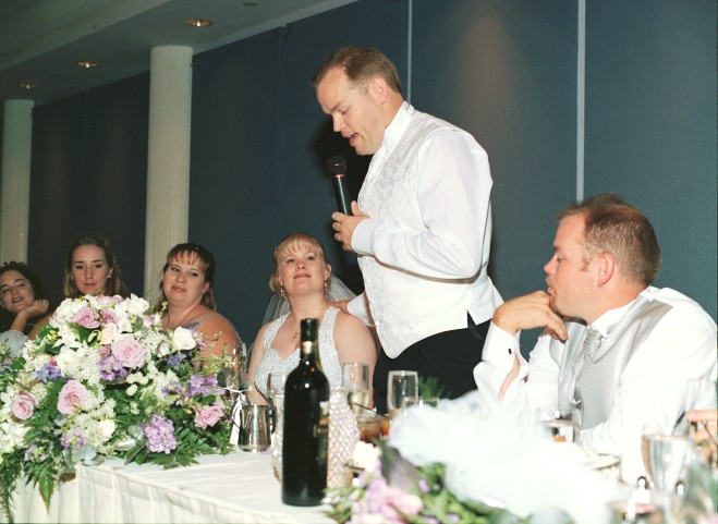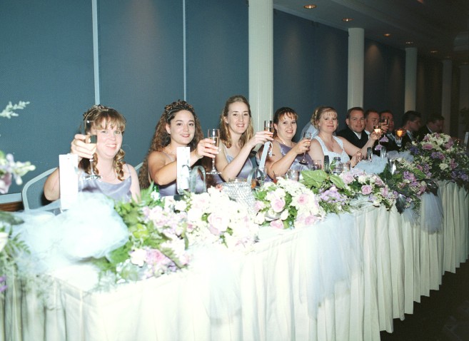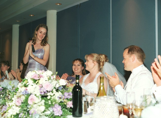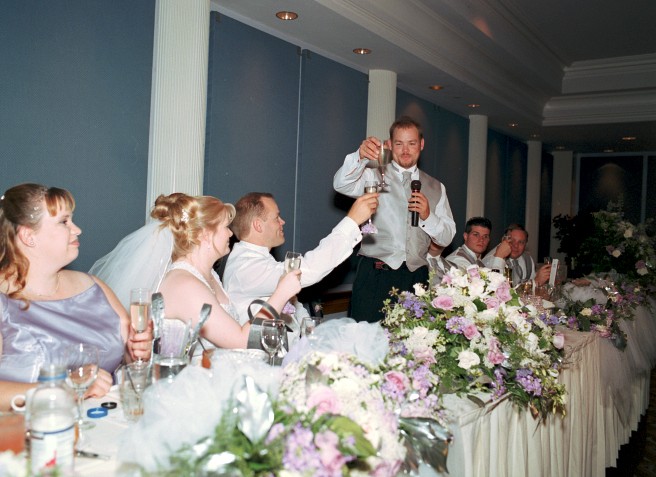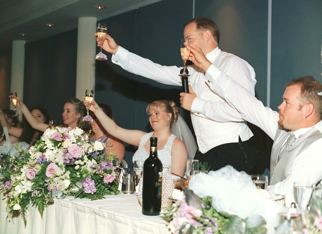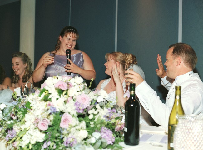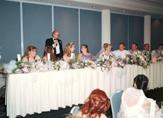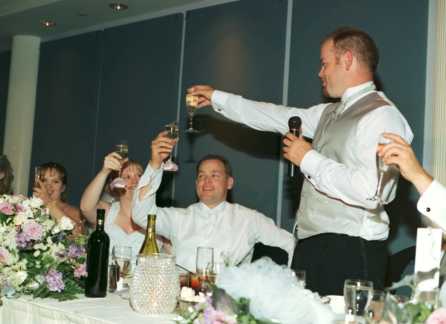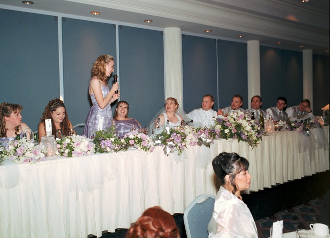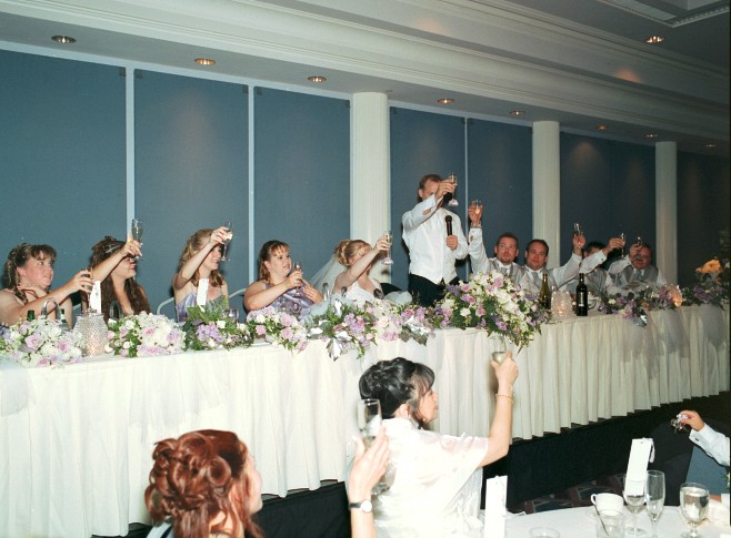 Reception - Toasts Here are pictures of all the wonderful toasts made by our friends and family... (Click each thumbnail for a larger image and then use your browser's 'Back' button to return to this page.) Our Best Man, Kevin Our Matron of Honor, Heather (Live long and prosper...) Our Maid of Honor, Alethea My dad, Ron Scott The Entire Bridal Party Toasting