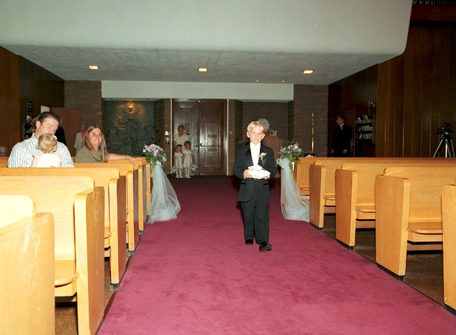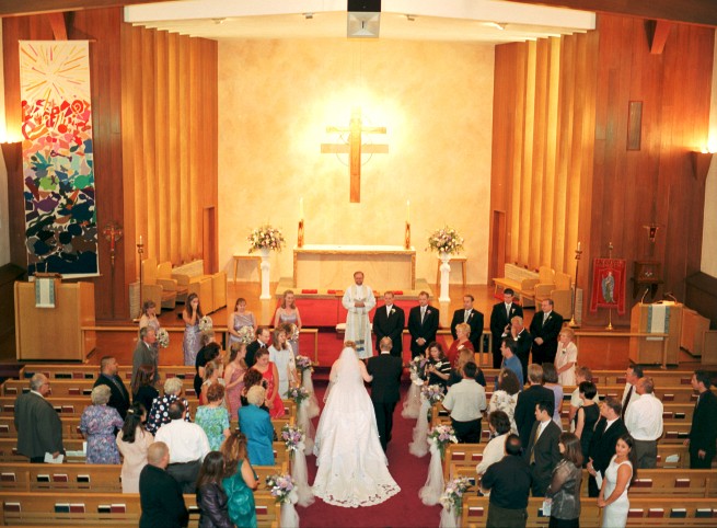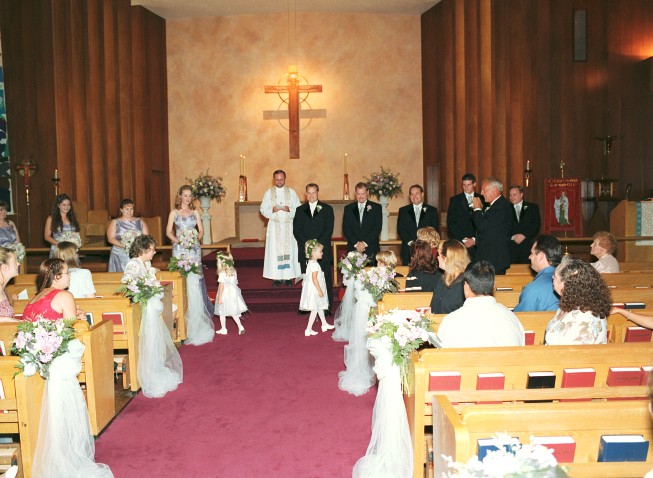 Liz and Scott's Wedding Website ~~~~~~The Ceremony~~~~~~ The ceremony was held at St. Peter's Episcopal Church in Redwood City. Here are pictures of the procession, ceremony and recession. (Click each thumbnail for a larger image and then use your browser's 'Back' button to return to this page.) Procession and Presentation